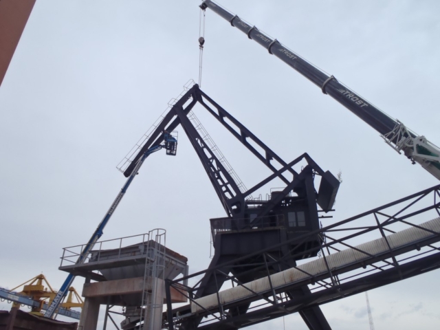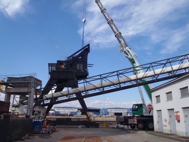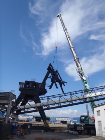 Demontage eines Hafenkran